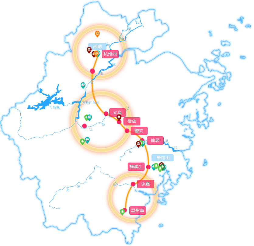 利用杭州、金義、溫州三大都市區(qū)同城效應(yīng),對(duì)沿線產(chǎn)業(yè)資源實(shí)現(xiàn)重新配置,激活區(qū)域經(jīng)濟(jì)發(fā)展。